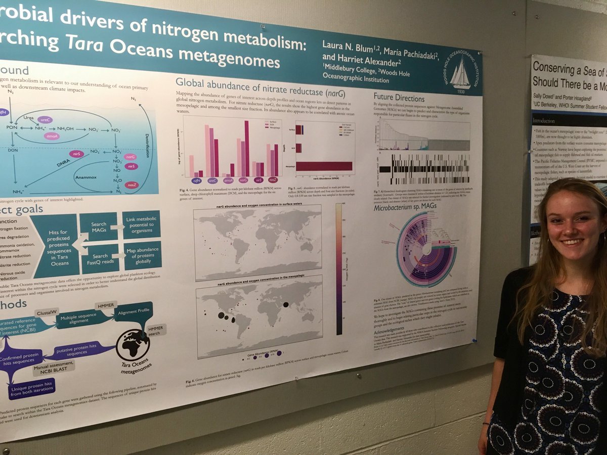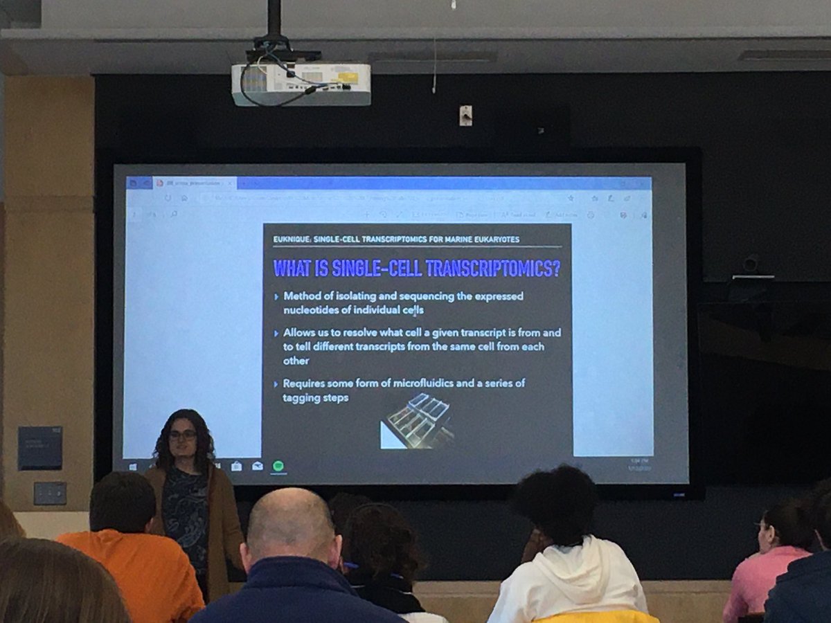 @MargaretBrisbin (now a Prof at @USFCMS) is presenting the omics data she added onto an existing time series in Massachusetts Bay. Went looking for Phaeocystis blooms and came away with a super interesting dataset. (Thursday at 09:03 in OB41B) 🛥️🗓️🌊🧬